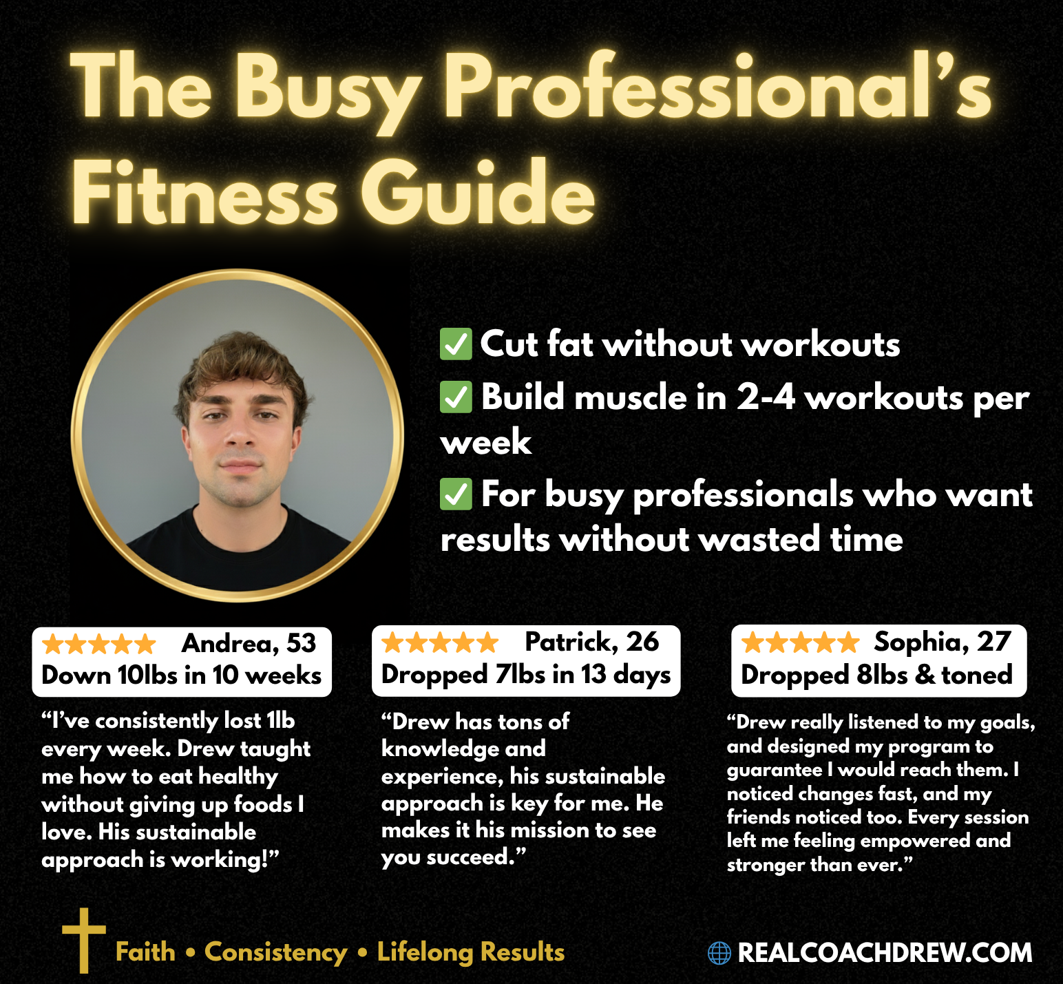 This free digital guide is built for busy professionals who want results without wasting hours in the gym. Inside, you’ll learn how to maximize fat loss and muscle growth through efficient training, nutrition, and lifestyle strategies that actually fit your schedule.